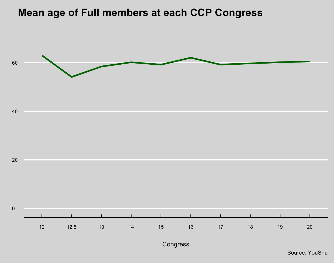 Funnily enough, the average age of a Central Committee member is not rising as a result.