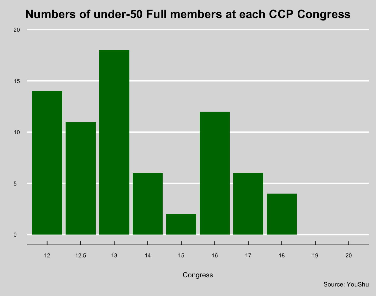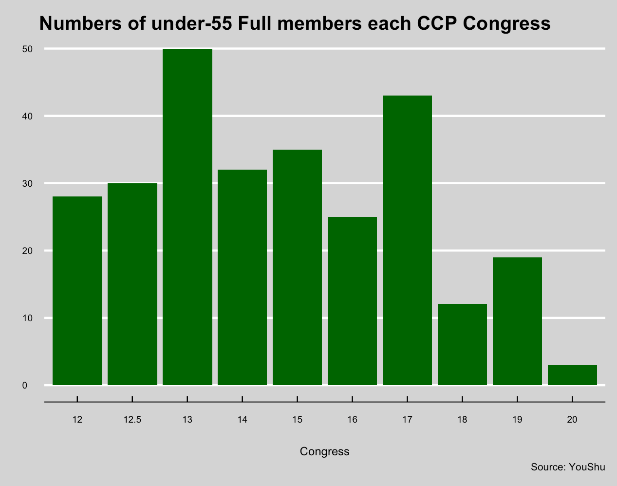 The situation for under-50s was ever grimmer. Xi chose ZERO of them to join him in the Central Committee at the 19th and 20th Congresses. Talk about a lack of succession planning.